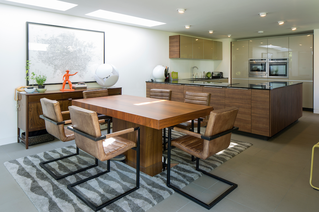 In large open plan extensions such as a kitchen, dining, living room, it is possible to create distinctly different looks for each area, known as a ‘broken plan’. Examples of this include using alternative flooring for the kitchen and living areas, differing floor or celling heights, a half wall to separate a living and kitchen space, or the placement of larger pieces of furniture to segment areas.