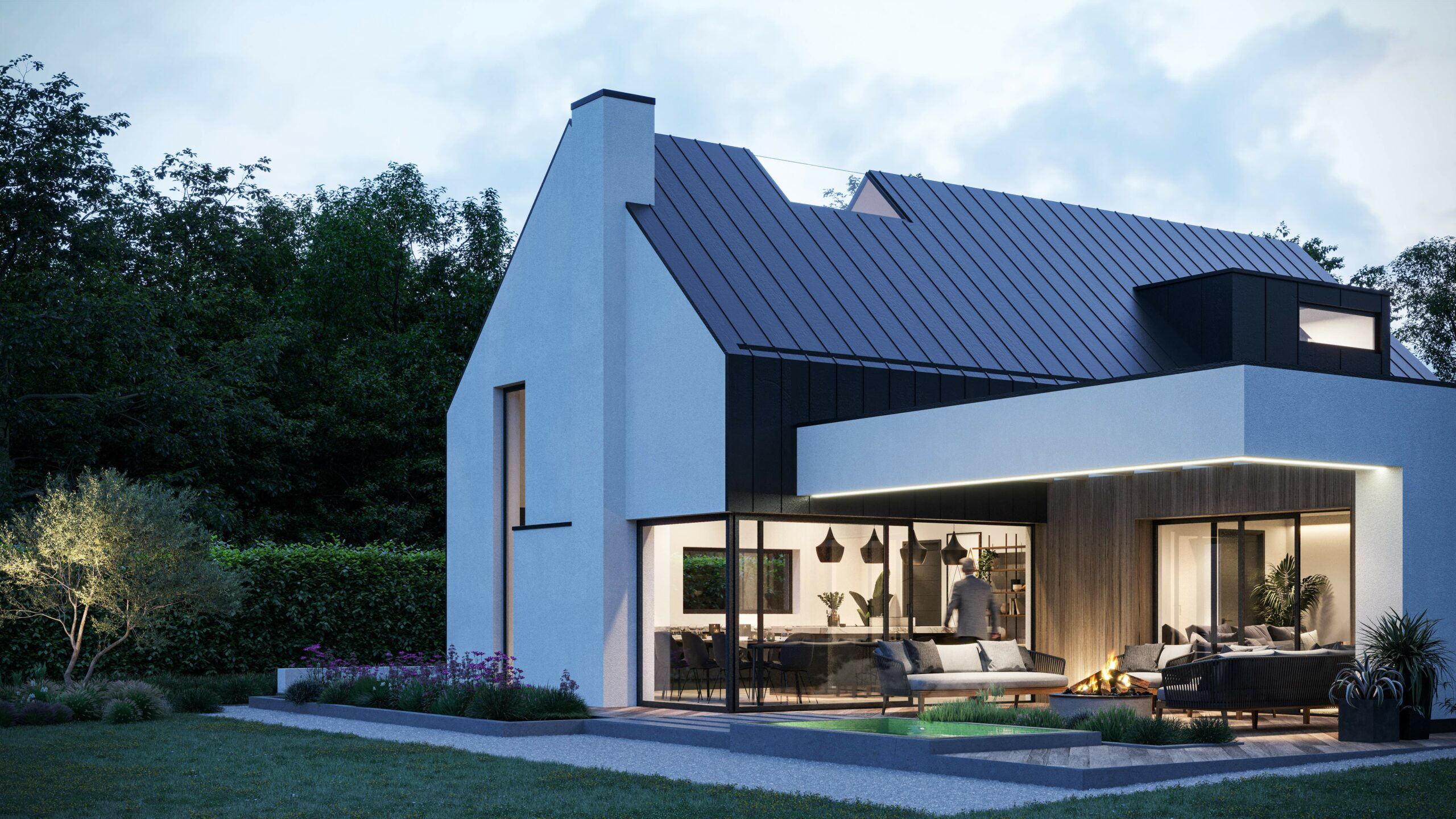 Our client shared our passionate belief in sustainable design, coming to us to re-evaluate an existing concept. Our design resulted in an 88% improvement of carbon emissions over the original concept by another practice. The SIPs offer lightweight off-site construction, using 35% less timber than traditional construction. Heating will utilise air source heat pump technology, and the house will be powered with carefully located PVs (Photovoltaic solar panels) to maximise return.