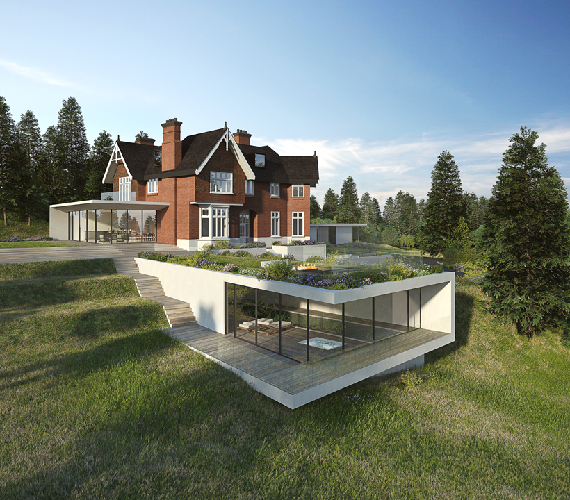 The generous proportions of this contemporary design adds enormous light to the internal spaces, with an improved layout and natural flow. A new underground pavilion will house the swimming pool, with a distinctive design that is at one with the landscape and takes full advantage of the stunning aspect.