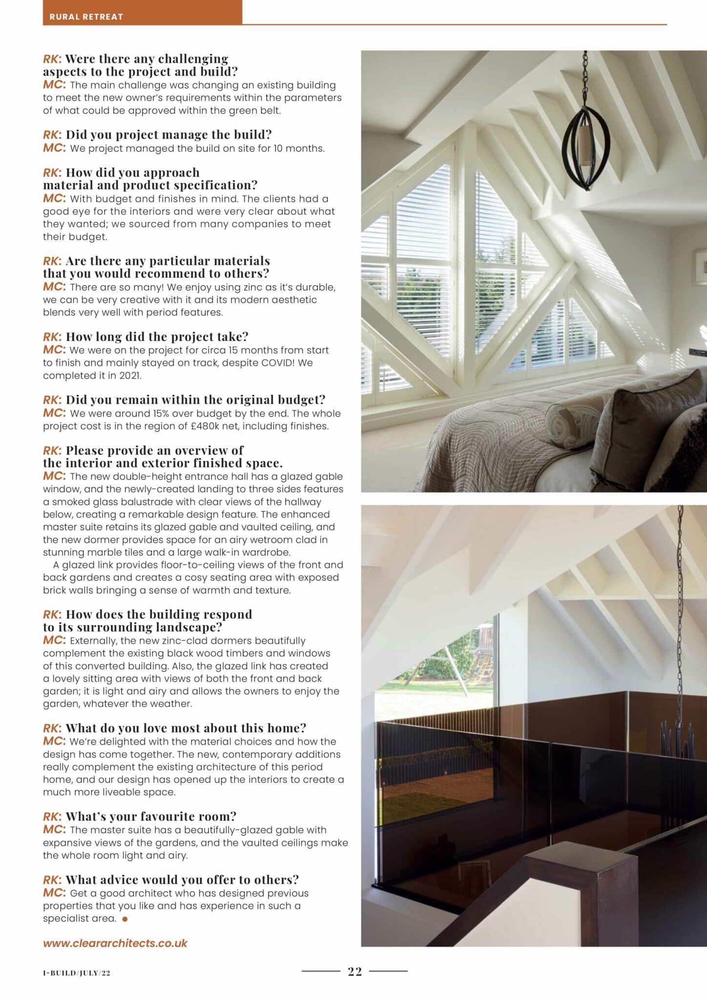 Clear Architects’ project The Stables has been profiled in the July issue of i-Build over 4 pages of editorial coverage. The magazine provides a fresh and modern approach to self-build product specification and design inspiration. It covers all of the issues close to our heart; sustainable living, innovation in design and the legalities. Project case studies cover self-build, renovation, extension and conversion.