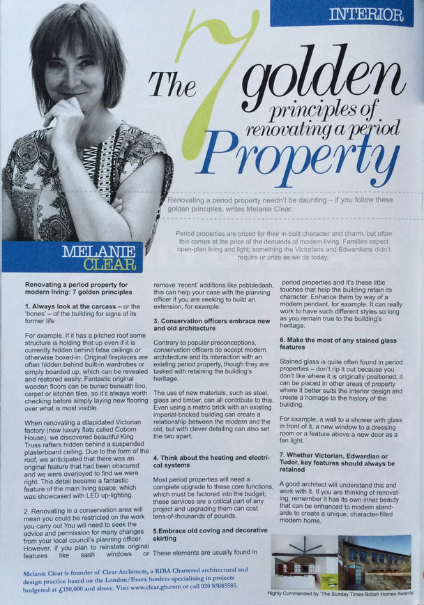 Our very own Melanie Clear tells Essex Style magazine the top 7 golden principles to keep in mind when approaching a beloved period property.