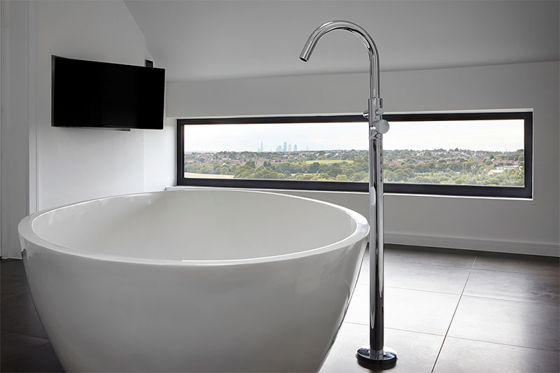 While there were numerous examples of this at the Hill Road project in Theydon Bois, Essex, The Sunday Times selected the stunning horizontal window from the master bathroom, which frames an incredible view of the London skyline.