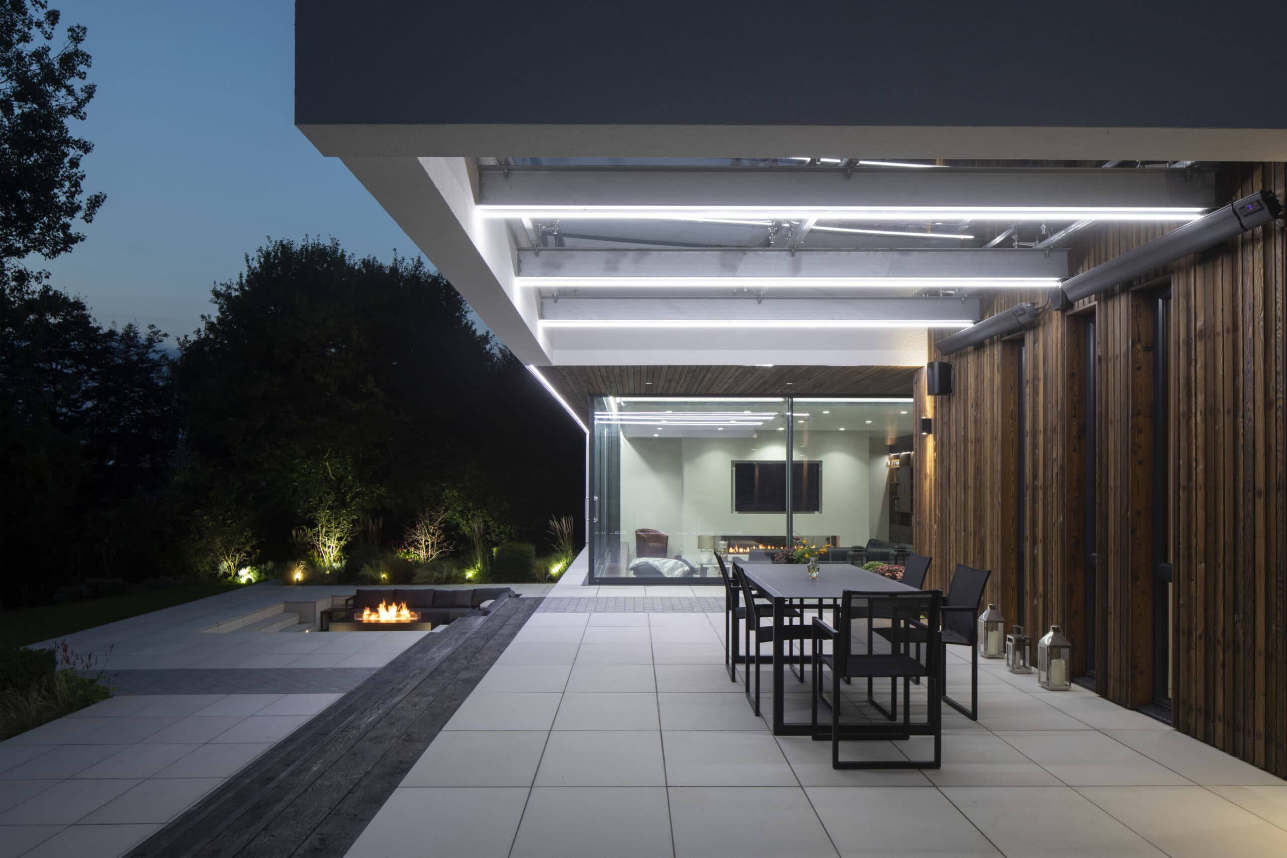 Driftwood’s modernist fire pit referenced in the article incorporates many features to add to this sense of modernity and cosiness.
