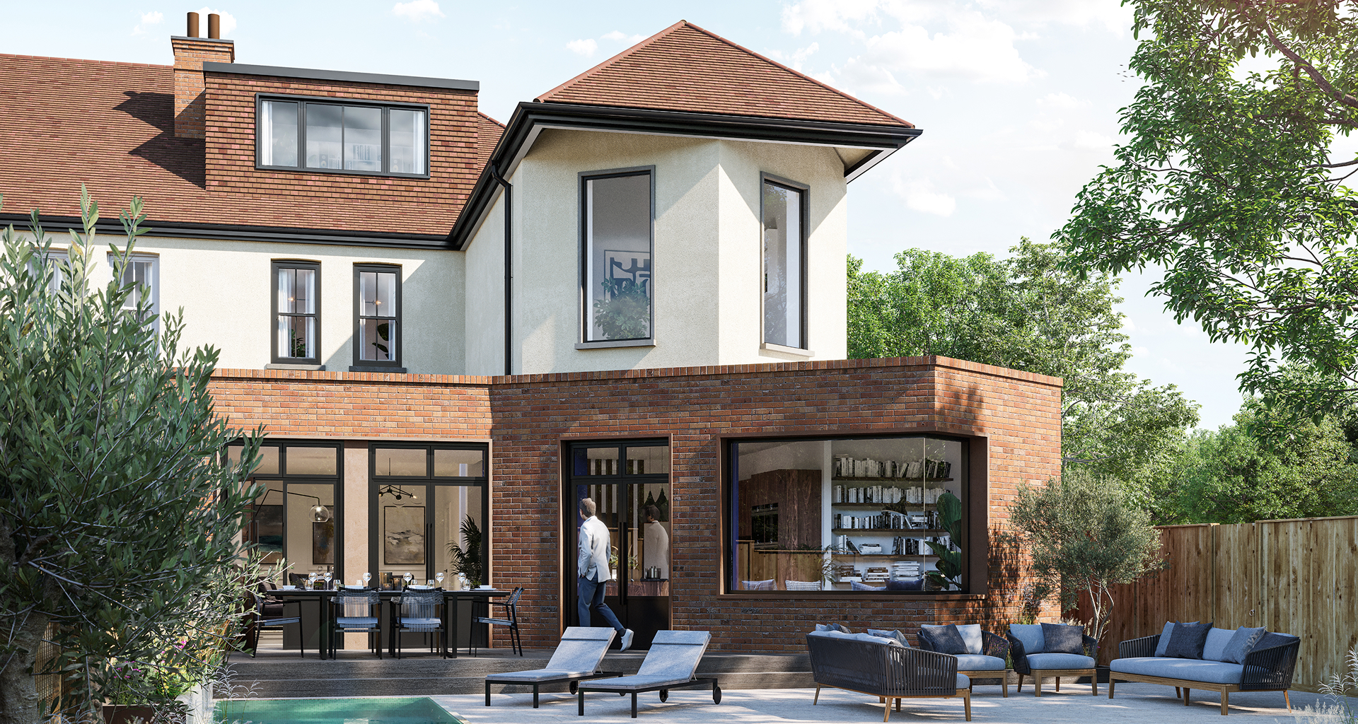 This was not an easy planning journey, requiring multiple applications as simply put -something different can be unwelcome! Yet the clients and ourselves remained undeterred, and eventually gained planning permission for the full design, including the first floor ‘pointed’ extension, creating a lovely reading space to the master bedroom, overlooking the newly landscaped garden.