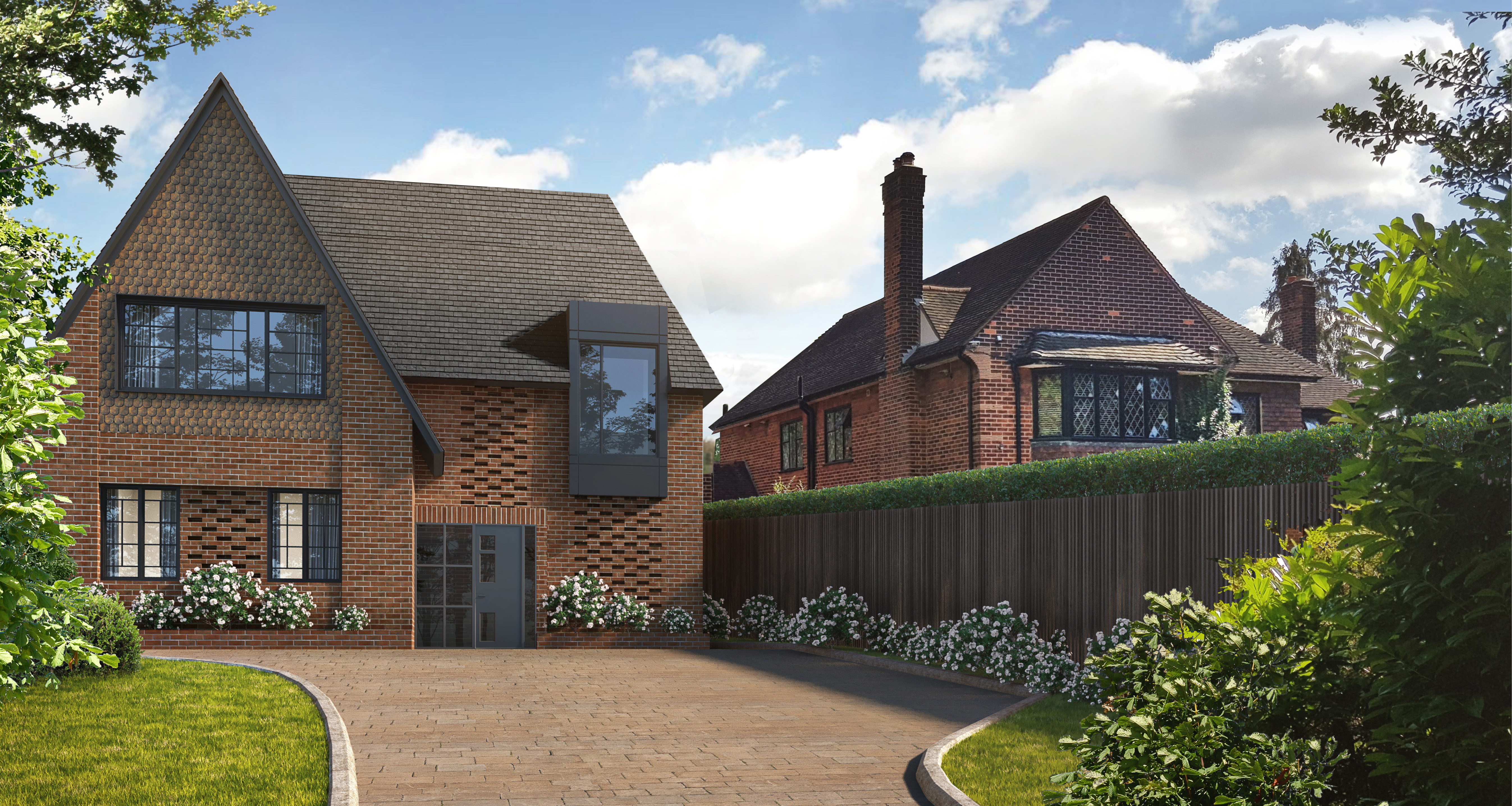 The current site is split into two plots, with the new build’s modern take on Arts & Crafts architecture remaining sympathetic to the existing house. We drew inspiration from characteristics of surrounding properties and incorporated our own interpretation of this era’s methodology, such as brickwork details, gable ends, and a careful selection of Crittall style doors and windows.
