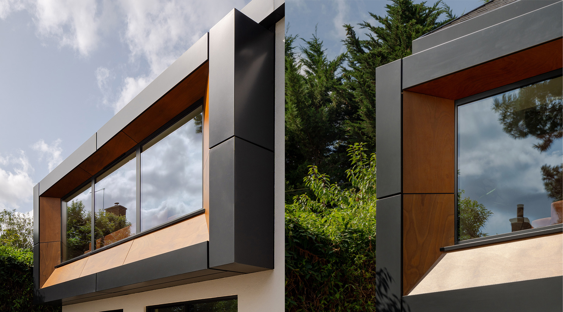- Anthracite zinc and Parklex timber cladding chosen for longevity and style