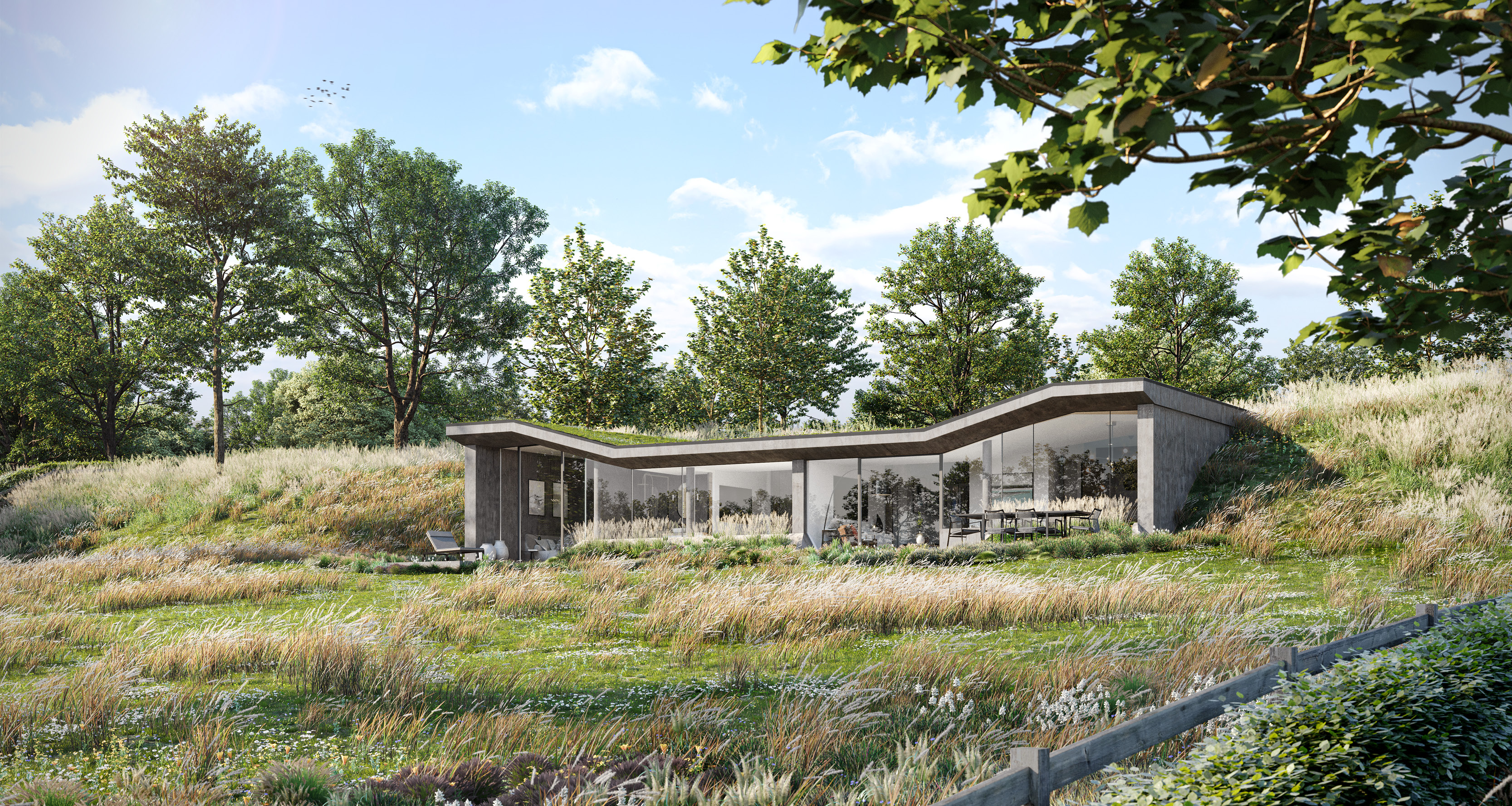 A Net Zero home set within the topography of the land forming our first subterranean architecture. The client's brief for this Green Belt new build was to be as sustainable as possible. The project’s site is set close to the family home and animal sanctuary that they have lived in for almost twenty years.