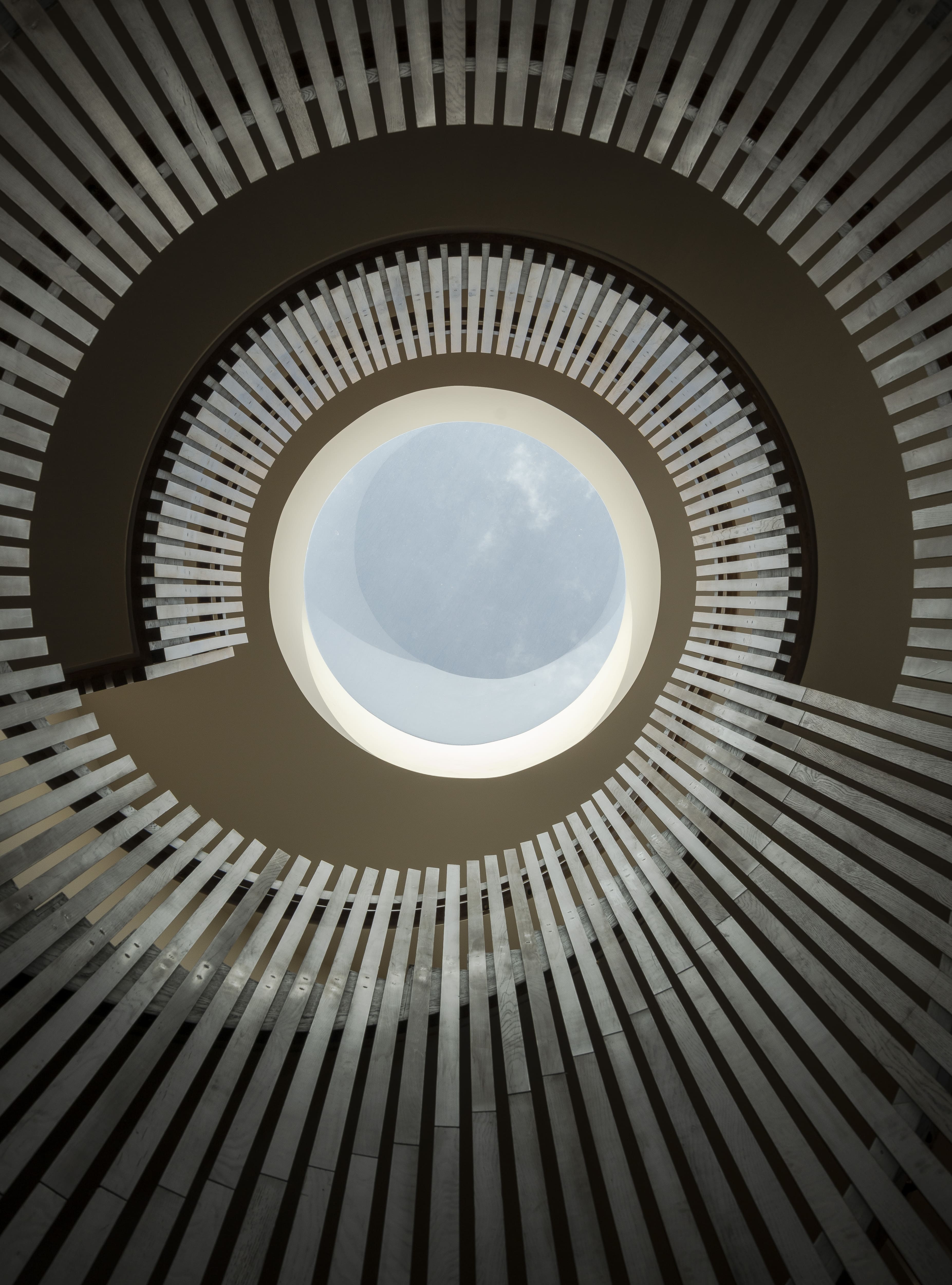 Our expertise in materiality developed the concept, the selection of a zinc clad core is a key component in the building’s striking and unusual shape, creating a prominent link between the two wings of the property. It houses the magnificent circular staircase, which sweeps over 3 floors and is beautifully wrapped in vertical timber.